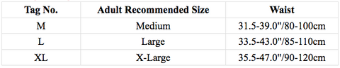 Tag No. Adult Recommended Size Waist