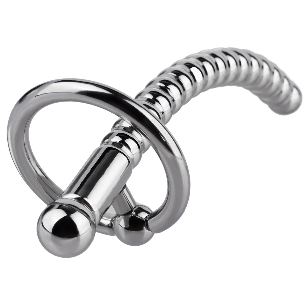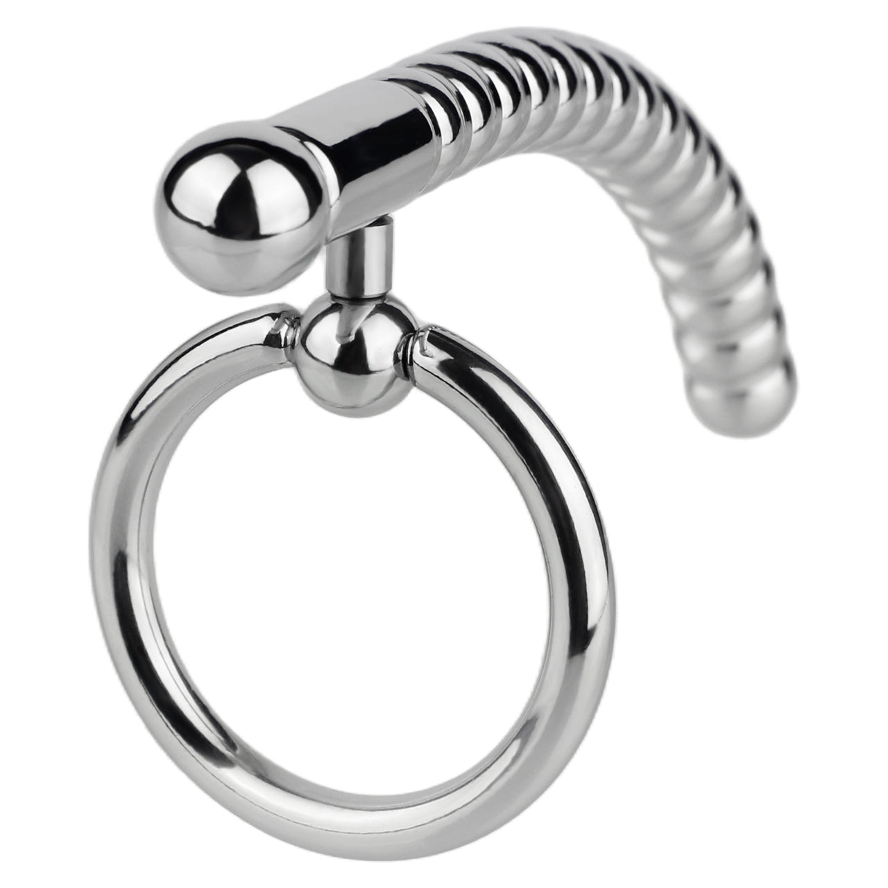 The Detachable Steel PA Penis Ring ensures secure placement with its dedicated PA bar. The thickened curved catheter offers unique, intense stimulation for novel sensations. Textured threading boosts friction to prevent slips and amplify pleasure. Crafted from body-safe 304 stainless steel, it's hygienic and easy to clean. Its removable bead cap acts as a urinary control, while rotating steel balls add dynamic play. With a discreet silver finish, this ring is built for adventurous, long-term wear.